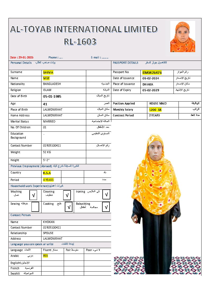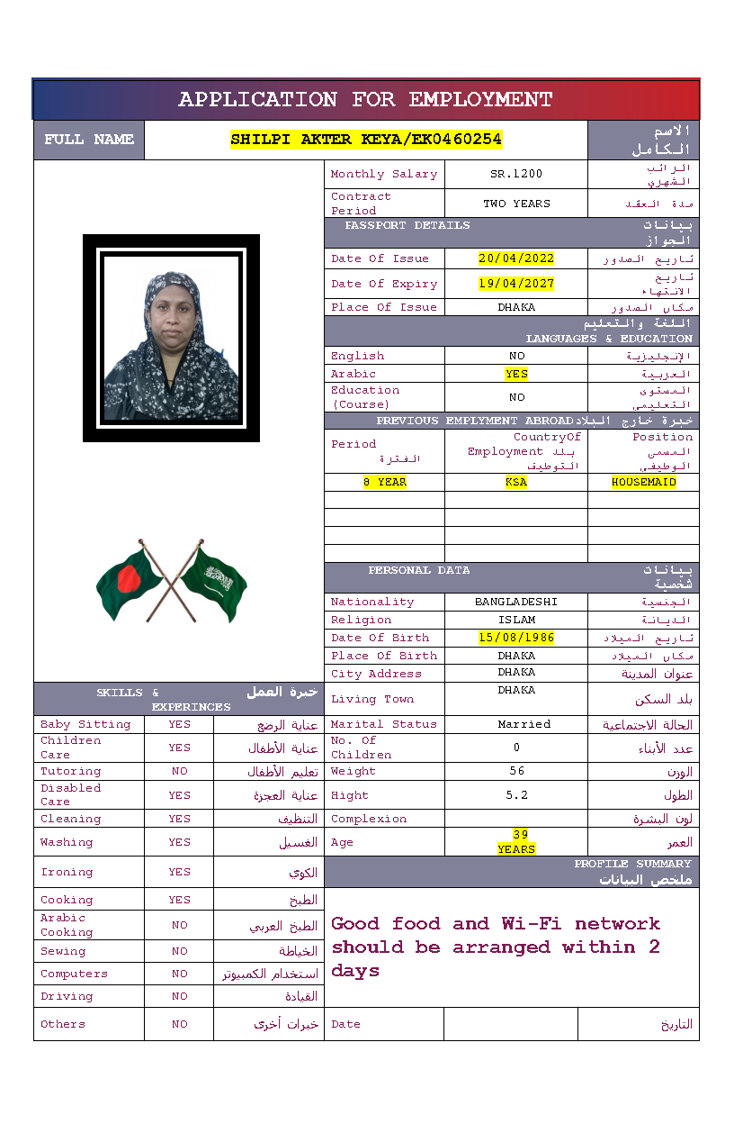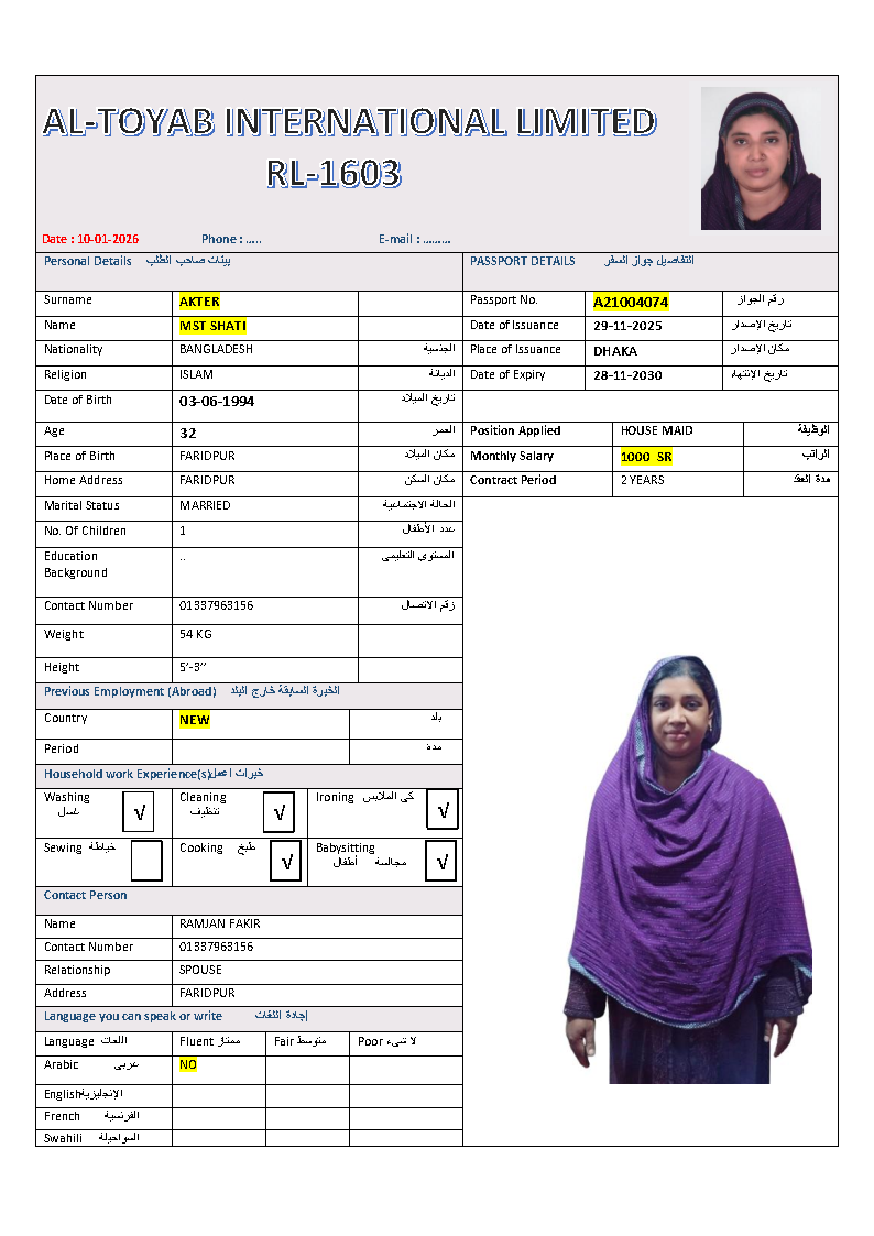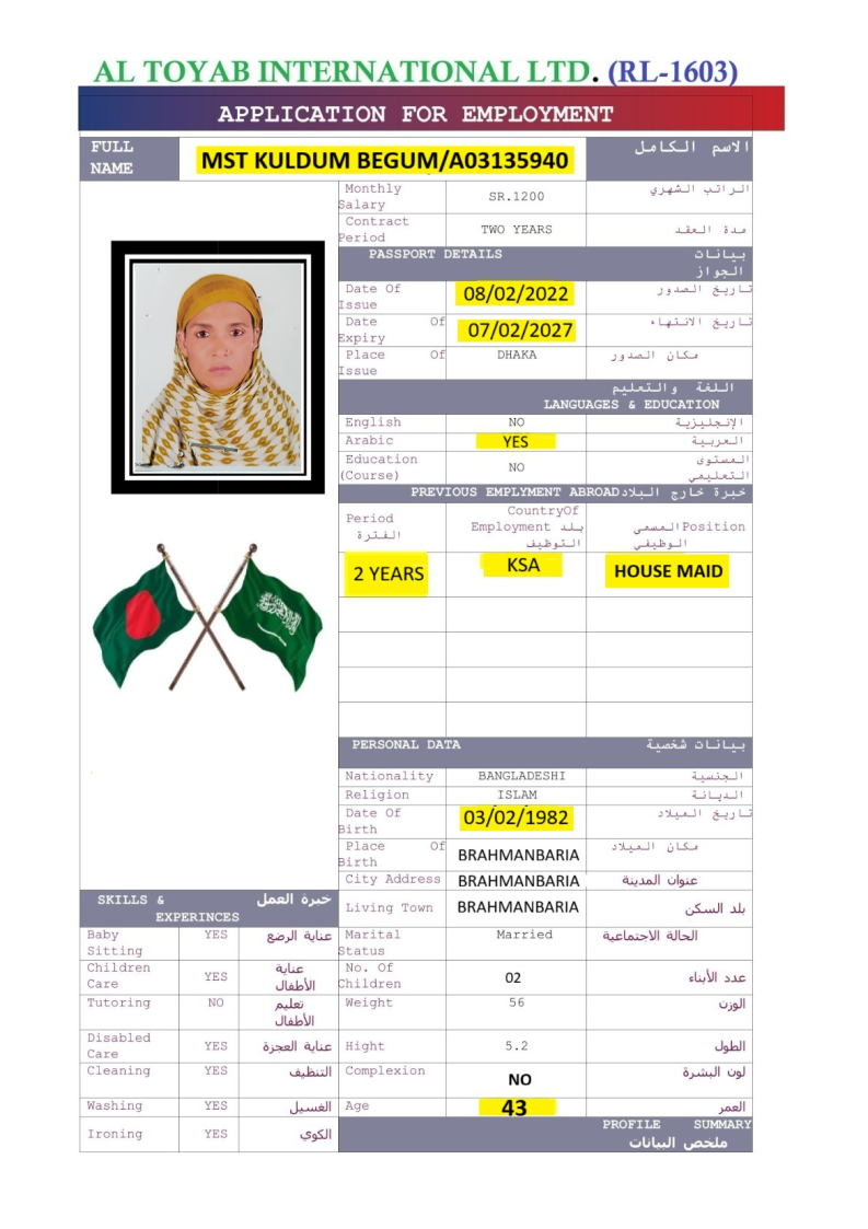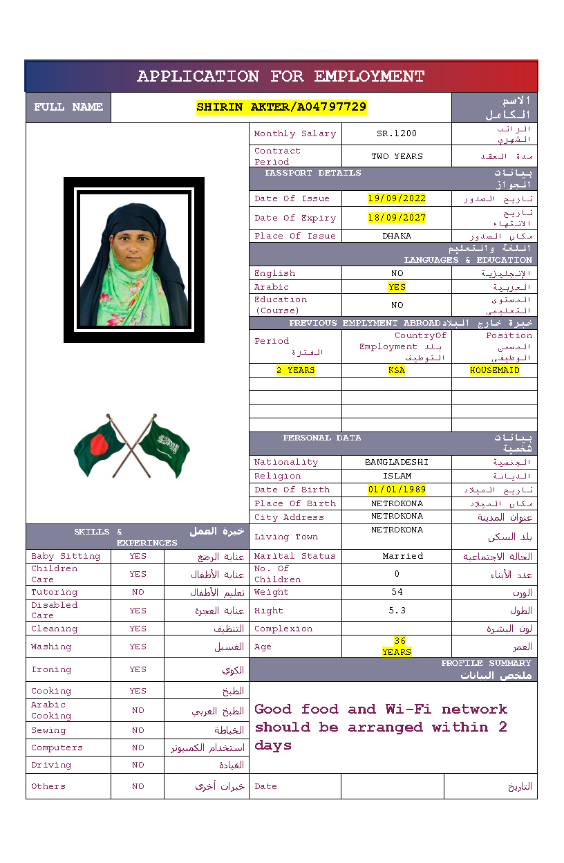سير ذاتية لعاملات بنغلاديش المتاحة: