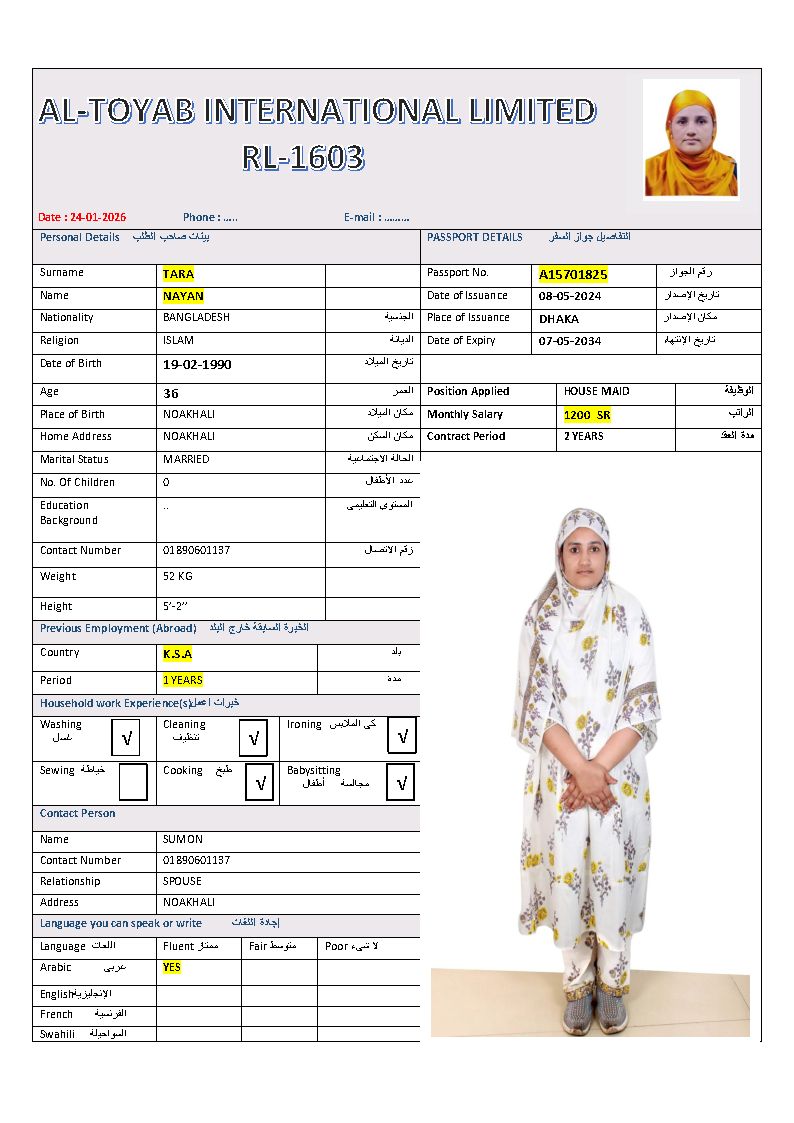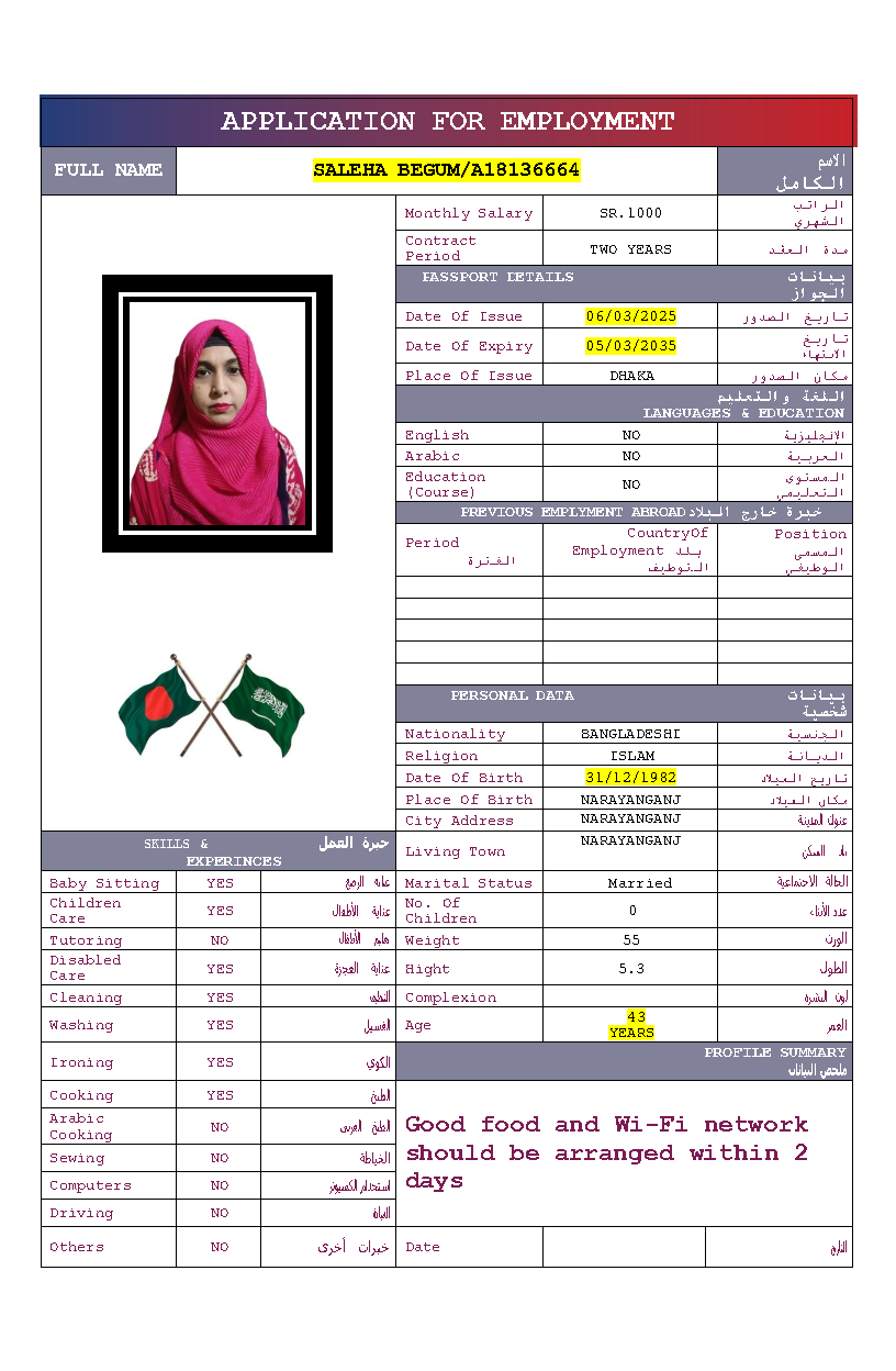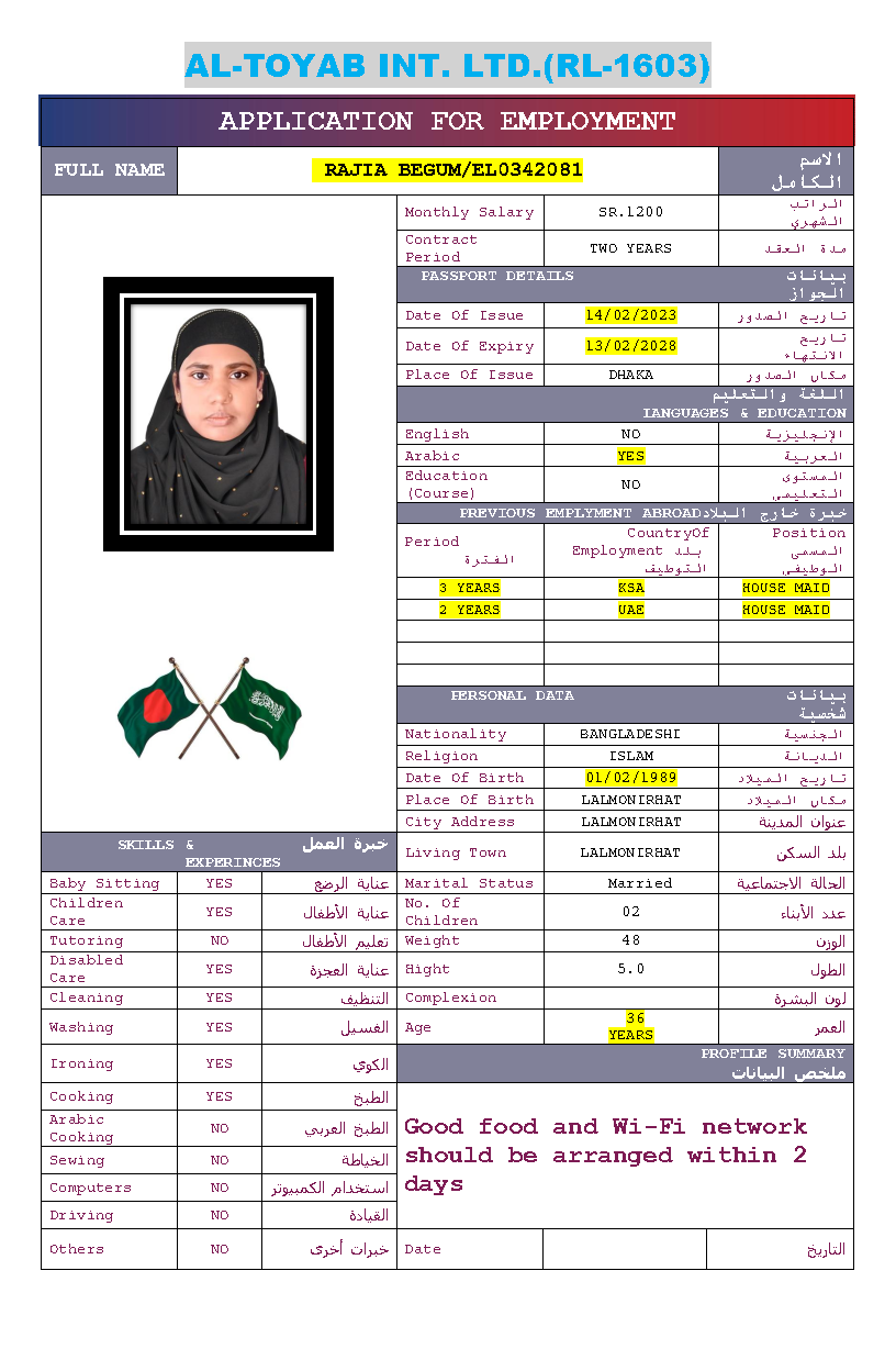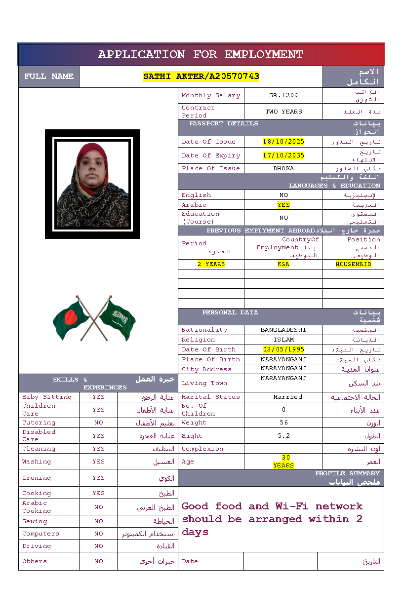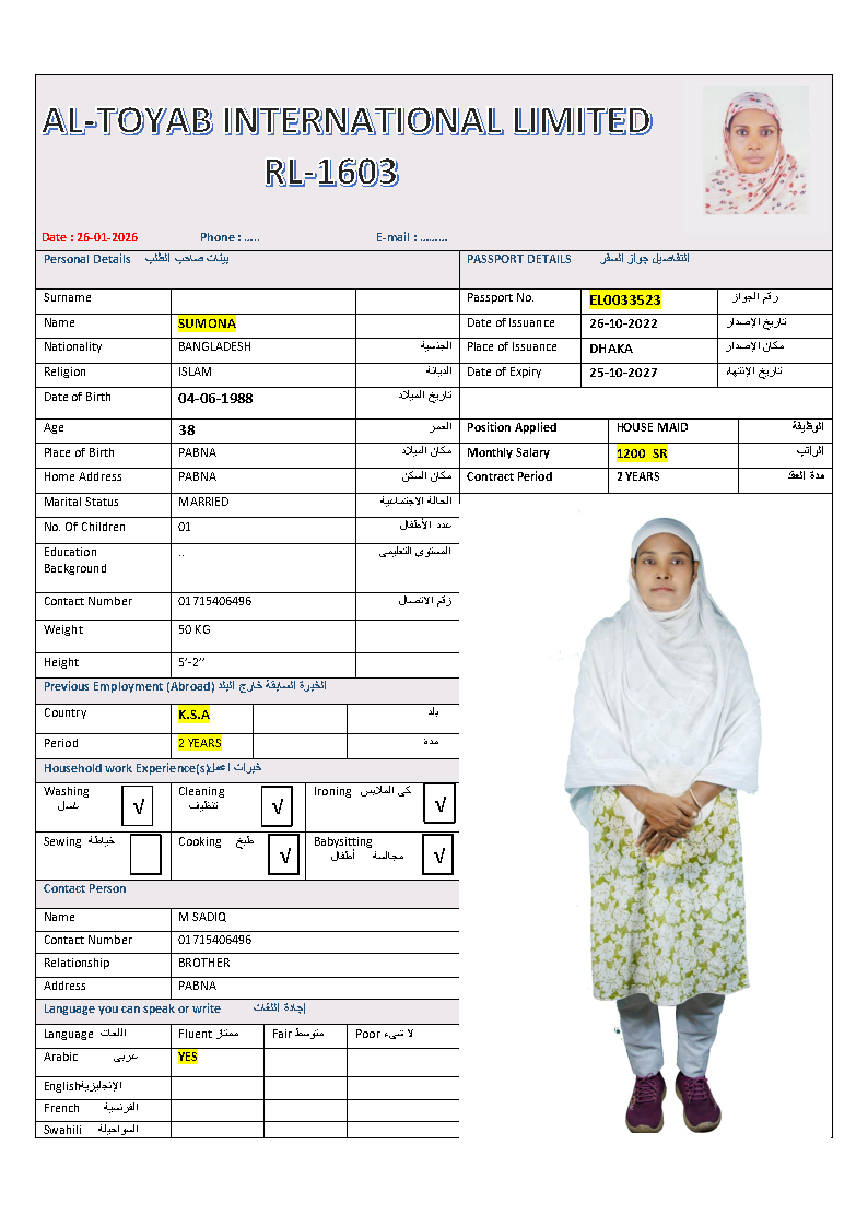 سير ذاتية لعاملات بنغلاديش المتاحة: