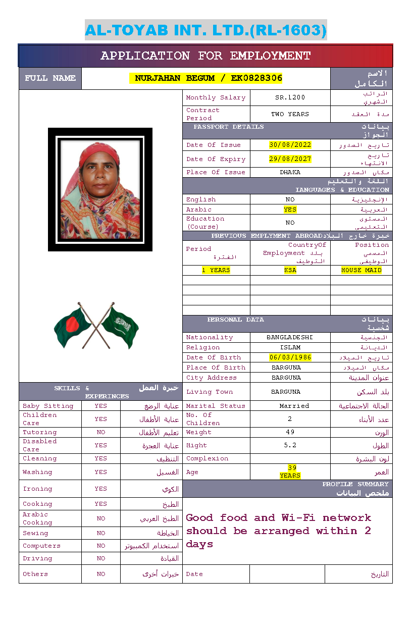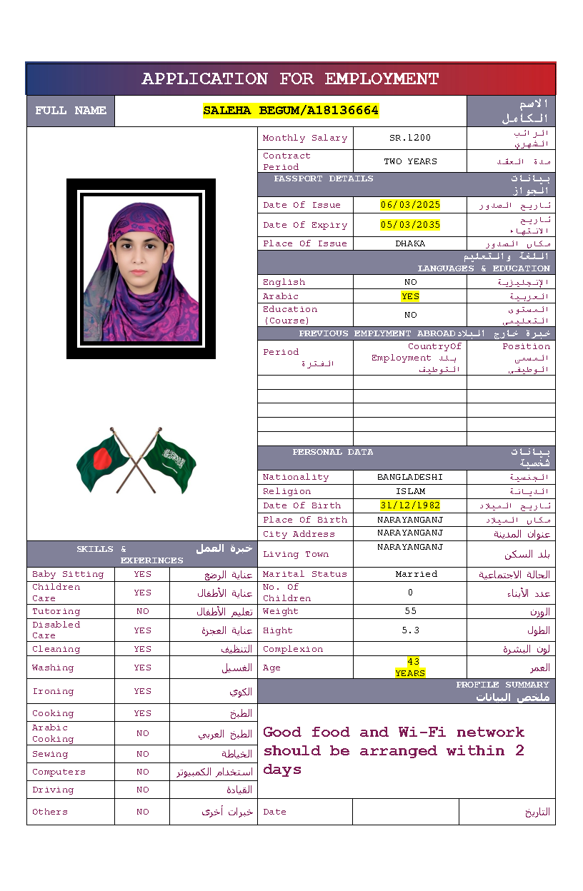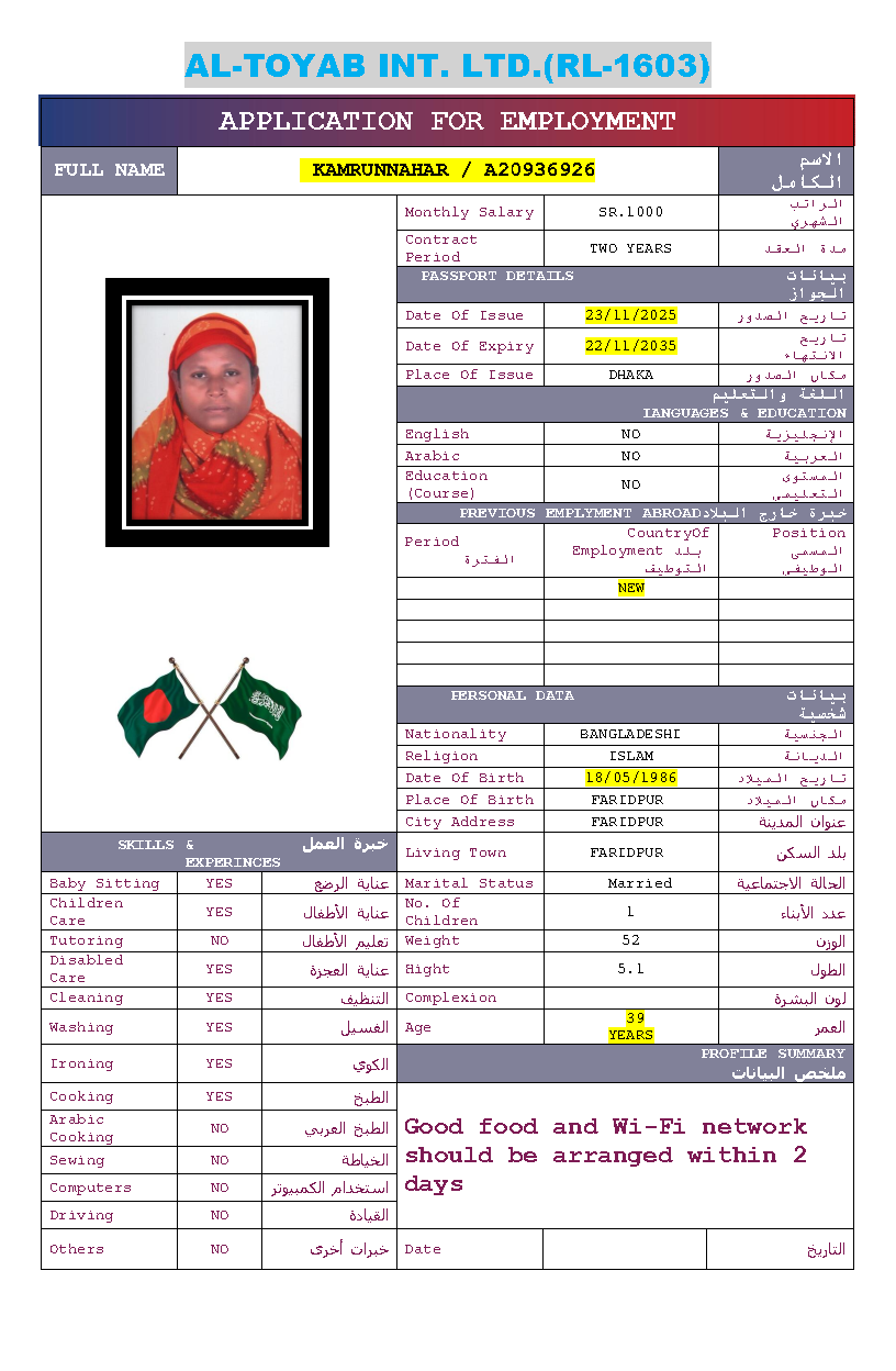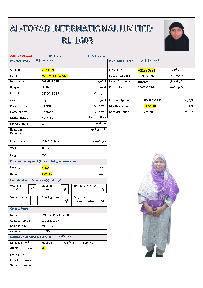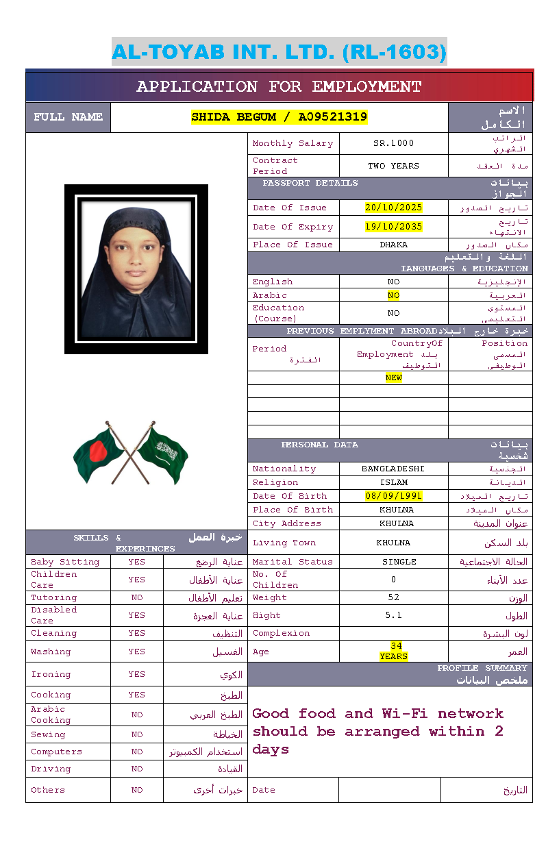 سير ذاتية لعاملات بنغلاديش المتاحة: