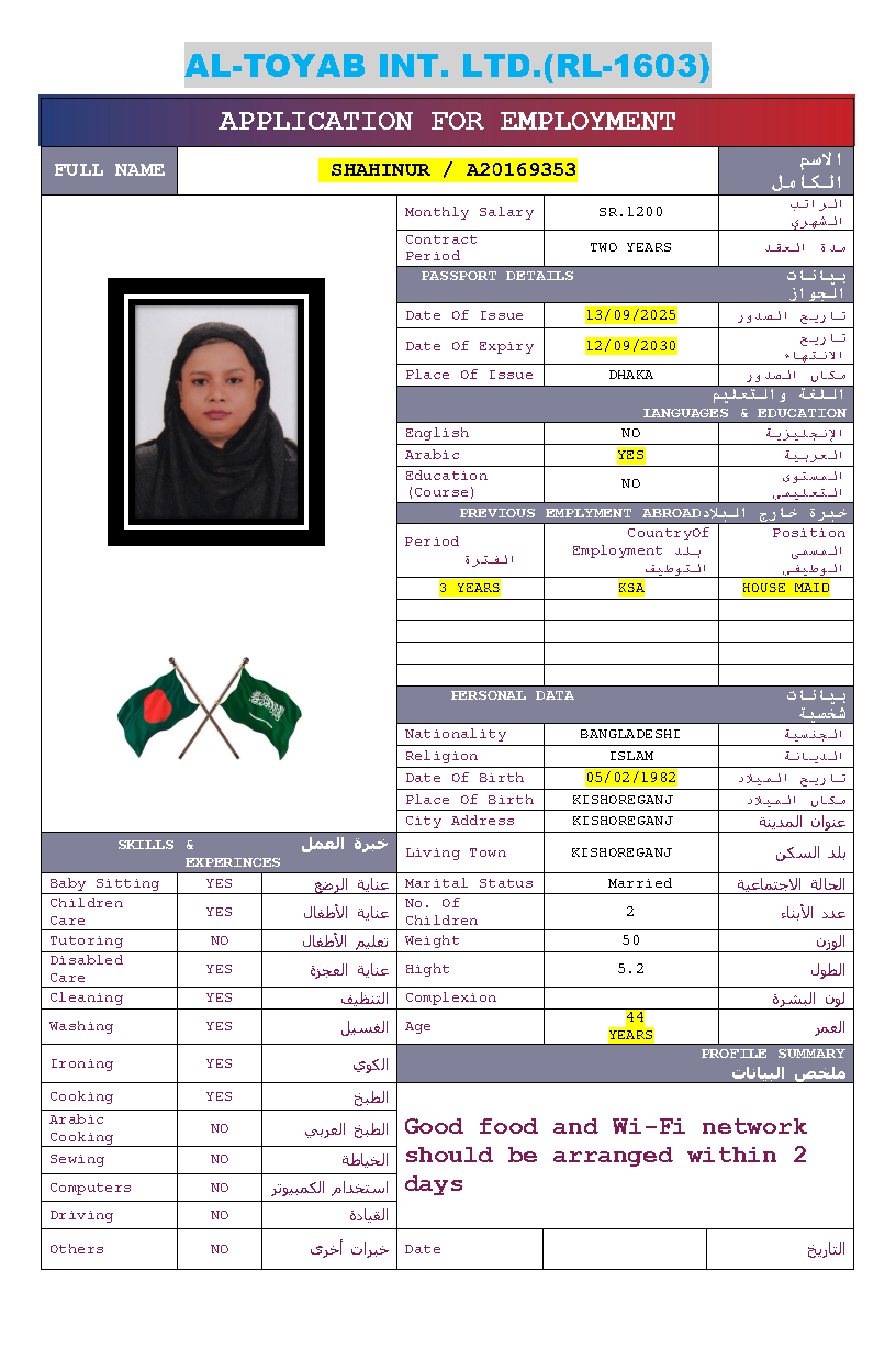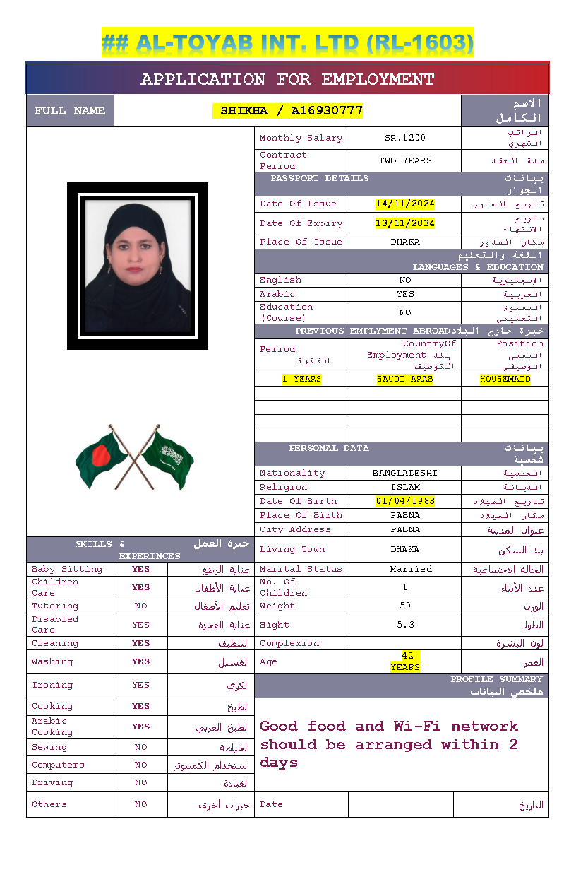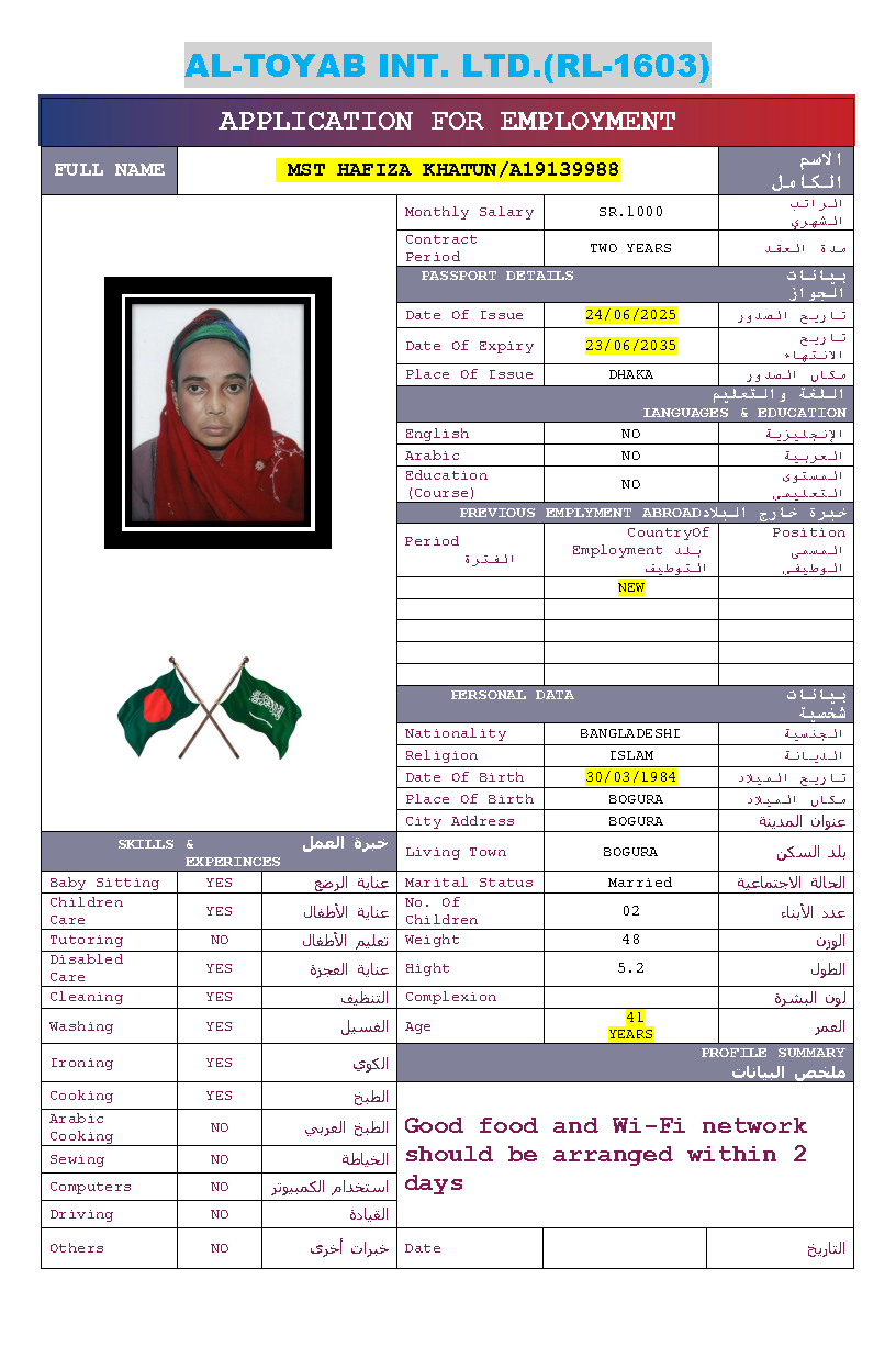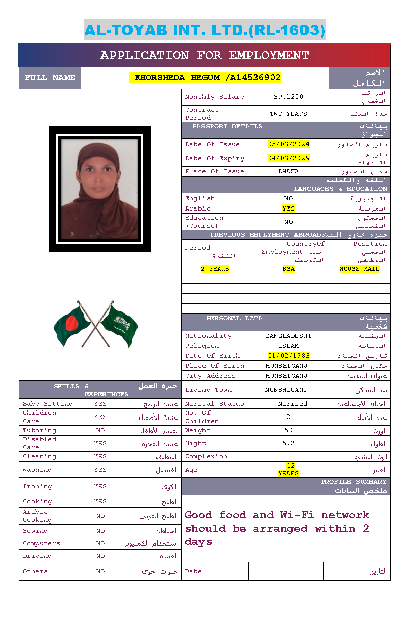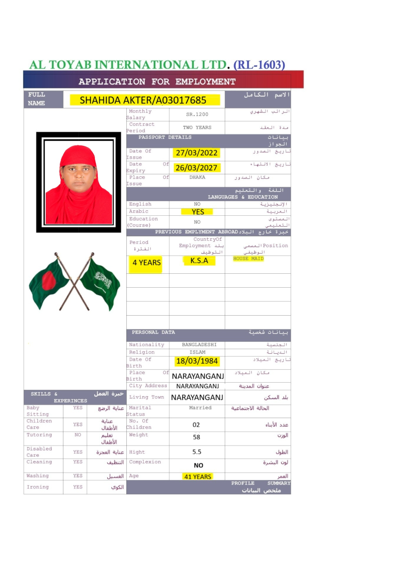سير ذاتية لعاملات بنغلاديش المتاحة: