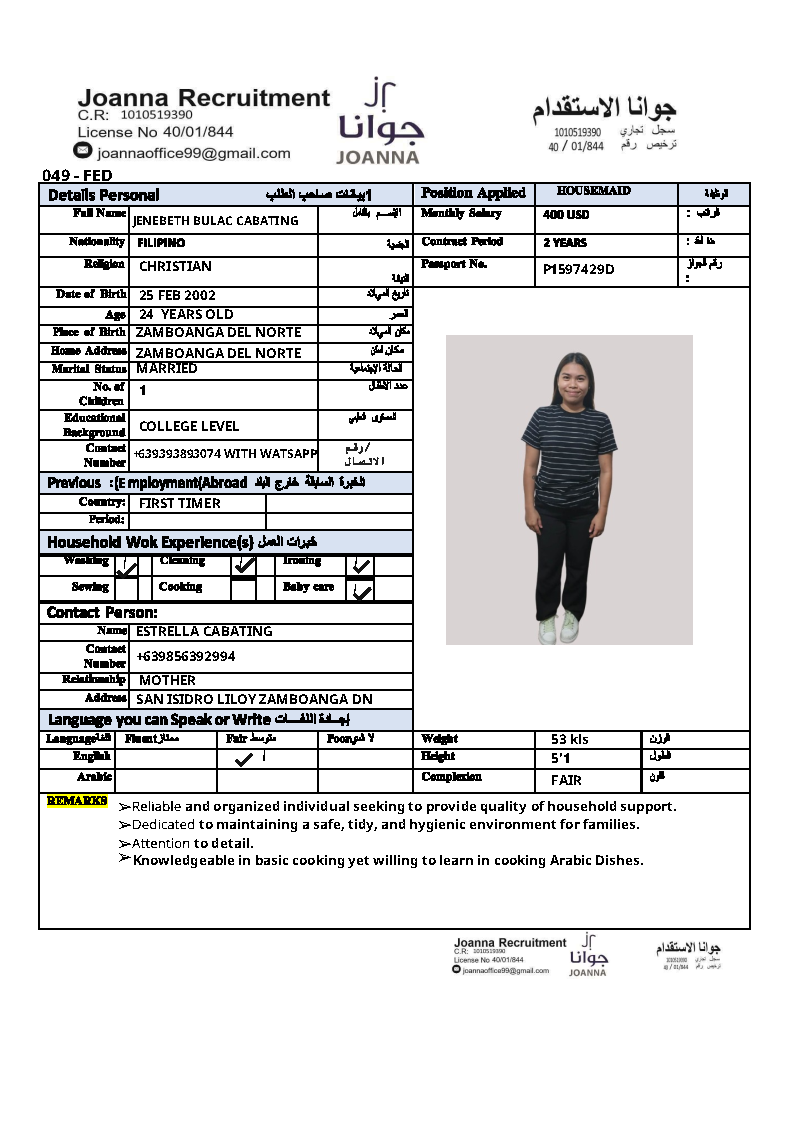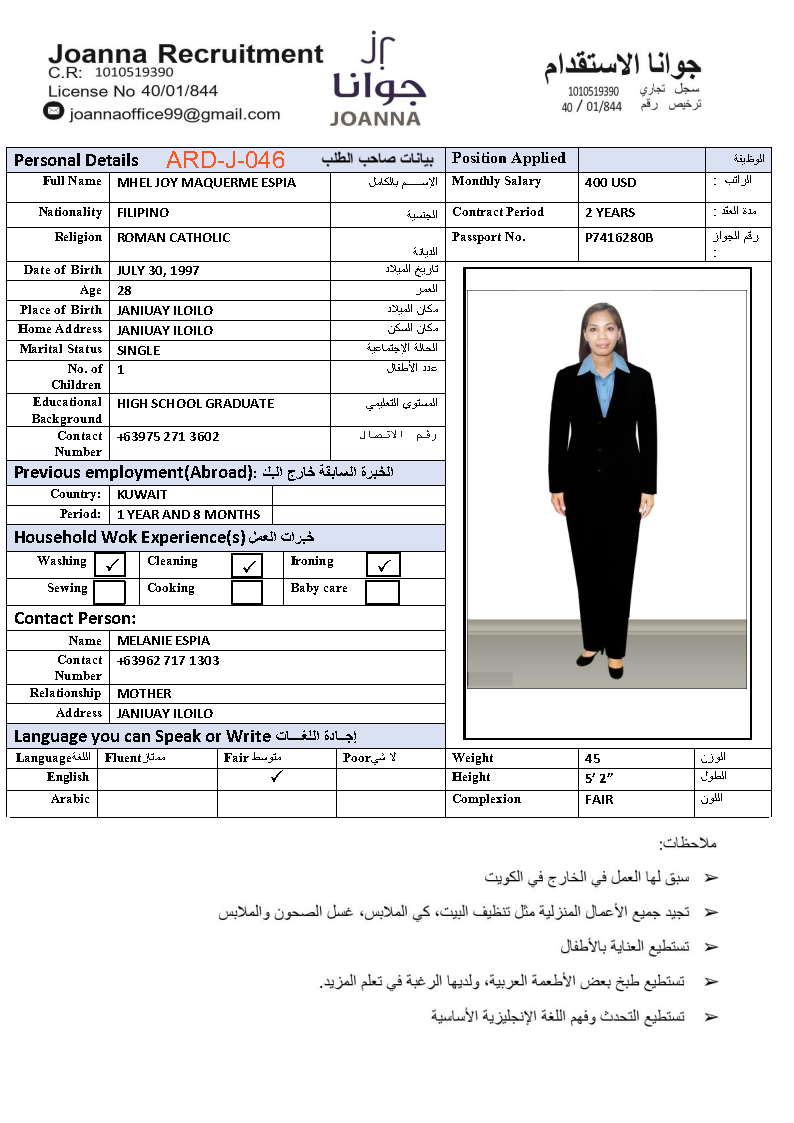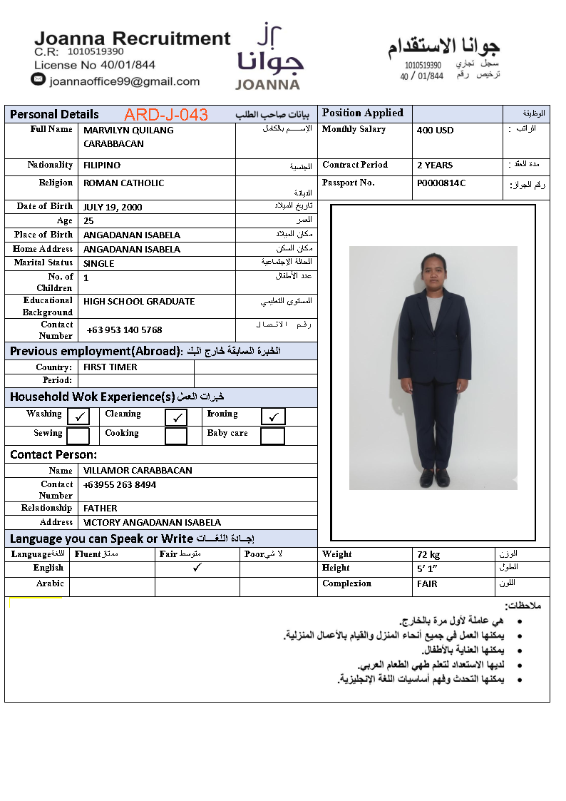 المهارات: عناية اطفال – غسيل – كوي – تنظيف – مساعدة بالطبخ