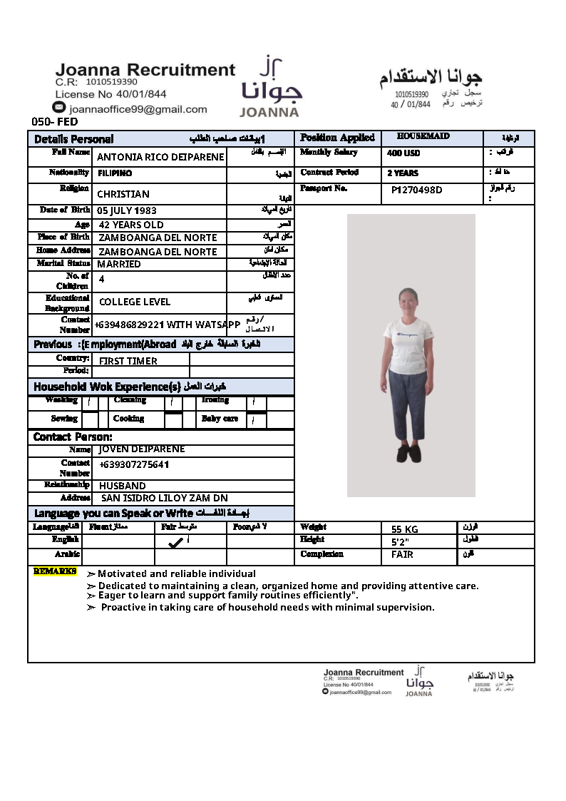 • قرار إلزامي من وزارة العمل الفلبينيةتواصل العميل مع العاملة لابلاغها بـ طبيعة وشروط العمل
